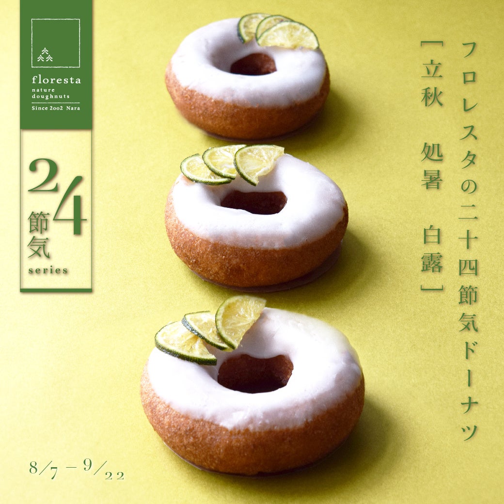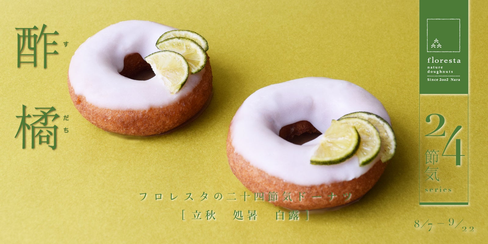 株式会社フロレスタ(本社:大阪市浪速区/代表取締役社長:辻尾吉厚)は、2022年より旬を味わう二十四節気ドーナツをリリースし、第5弾として8月7日(日)の立秋から「酢橘-すだち-」のドーナツを販売いたします。
