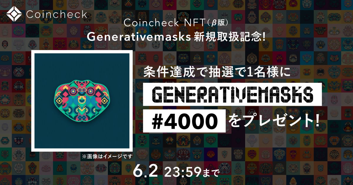 【Coincheck NFT(β版)】取扱い記念!抽選で1名様に『Generativemasks』#4000のNFTをプレゼント!