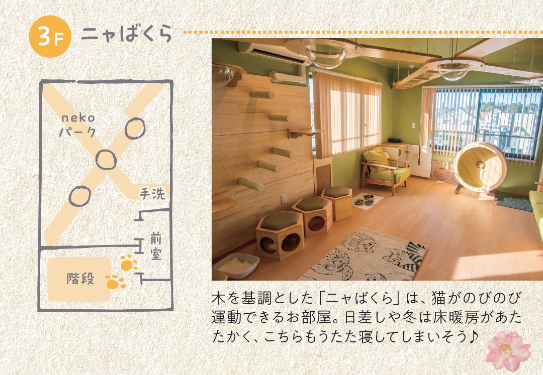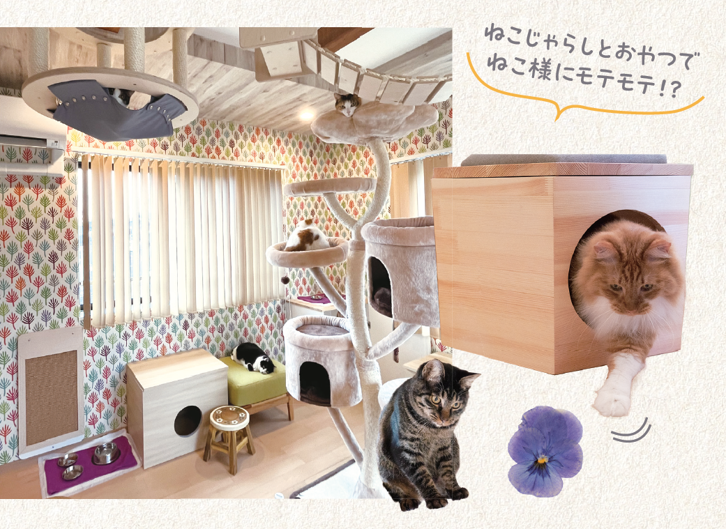 木を基調とした「ニャばくら」は、猫がのびのび運動できるお部屋。