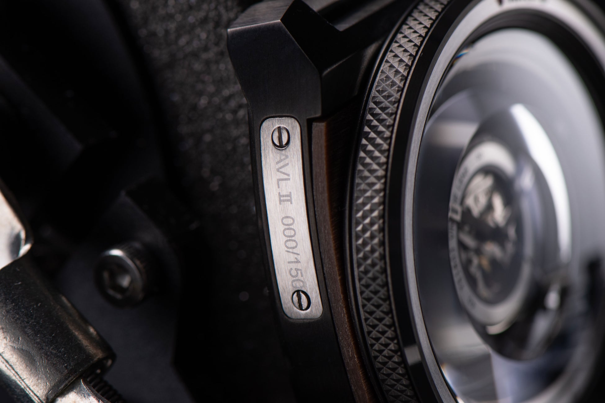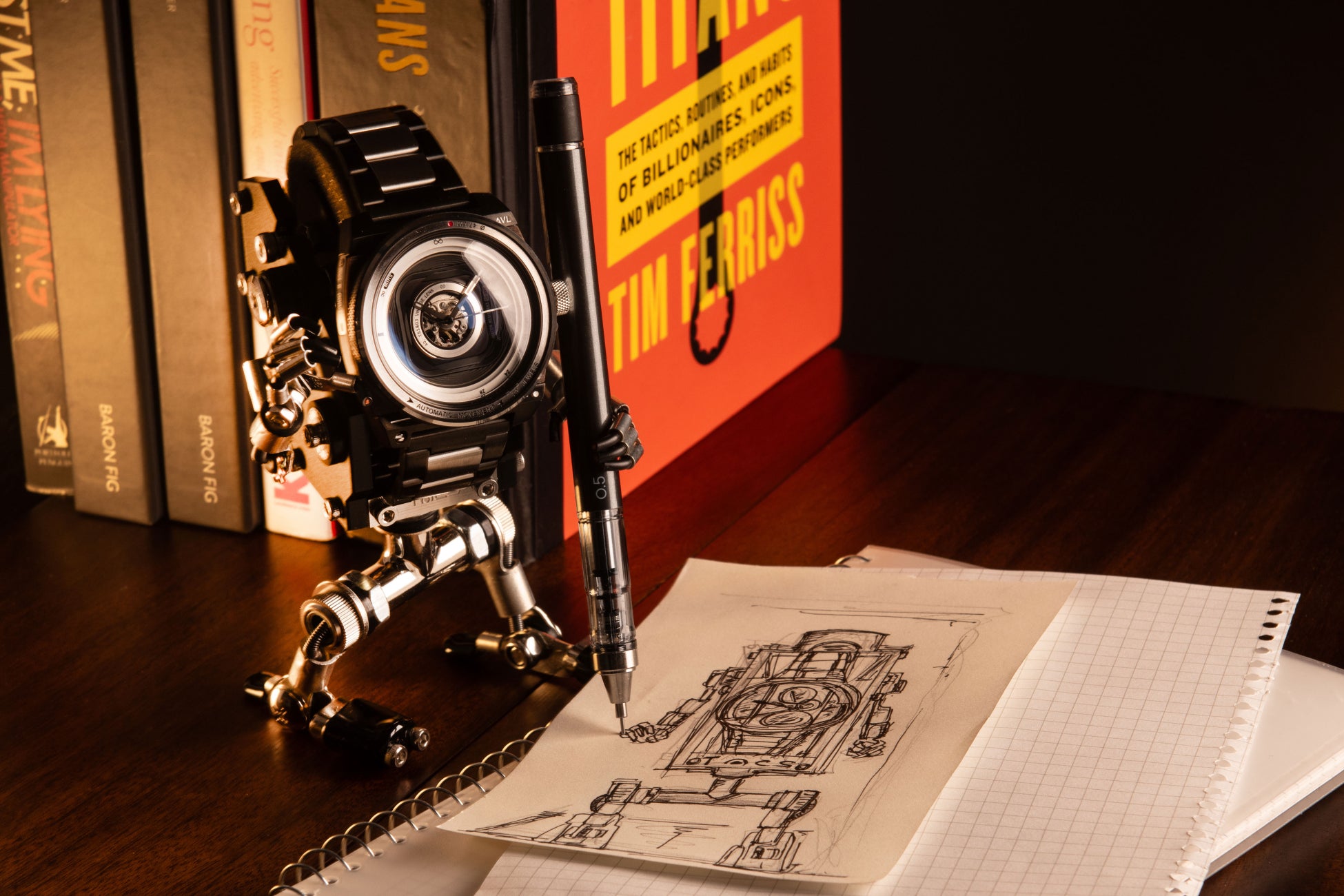 鮮やかな写真のように視線を引きつけ、魚眼レンズの層を重ねたサファイアガラスの風防、エッチング加工を施した回転ベゼル、焦点距離のように表示された分表示など、細部まで作り込まれたディティールと、本物のカメラのようなデザインが融合し表現されています。