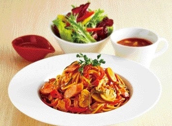 ピーマンやオニオンなど具材をたっぷりトッピングしました。どこか懐かしい定番パスタ。もちもち食感の生パスタに絡めてお召し上がりください。
