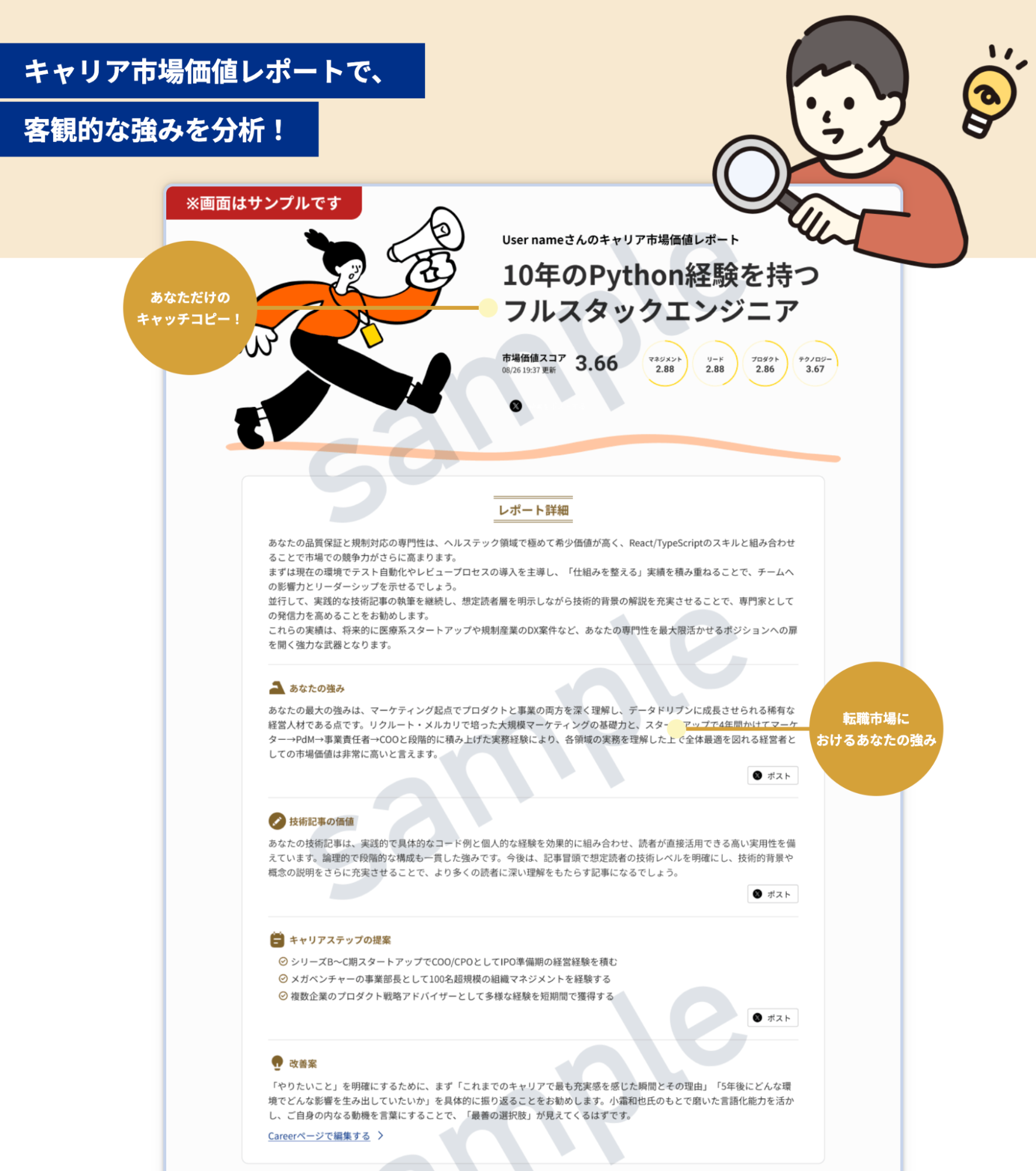LAPRAS、生成AIで強みを可視化する「キャリア市場価値レポート」を大幅リニューアル