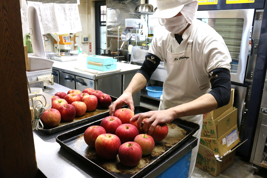 まるでお菓子作り。長野県伊那市の傷リンゴを、パン工房のオーブンで焼いて使用