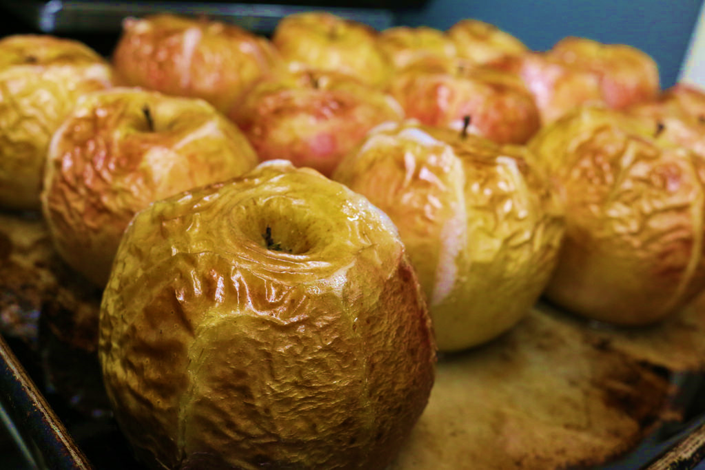 - まるでお菓子作り。500個の焼きリンゴをつくるところから手づくりです
