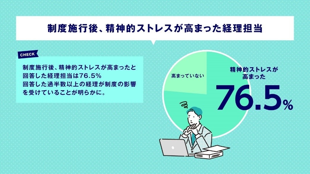 1.施行後、精神的ストレスが高まった経理担当は76.5%