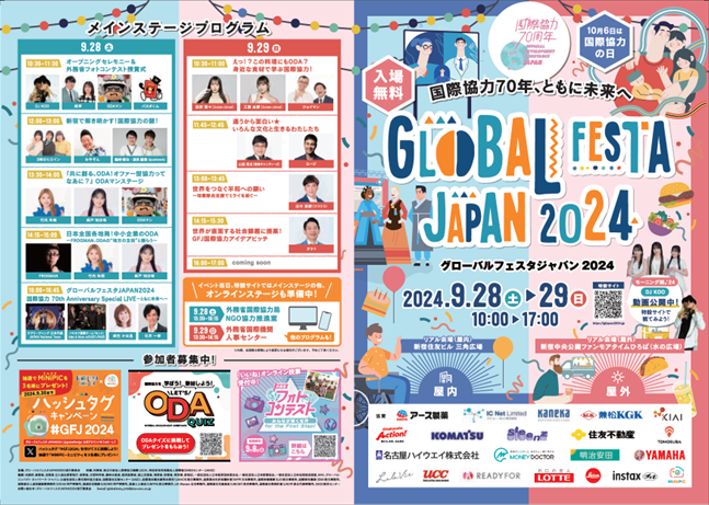 また、2024年9月28日(土曜日)・29日(日曜日)に屋内会場:新宿住友ビル 三角広場、屋外会場:新宿中央公園 ファンモアタイムひろば(水の広場)で開催されるグローバルフェスタJAPAN2024へのODAマンとFROGMANの登壇が決定いたしました。