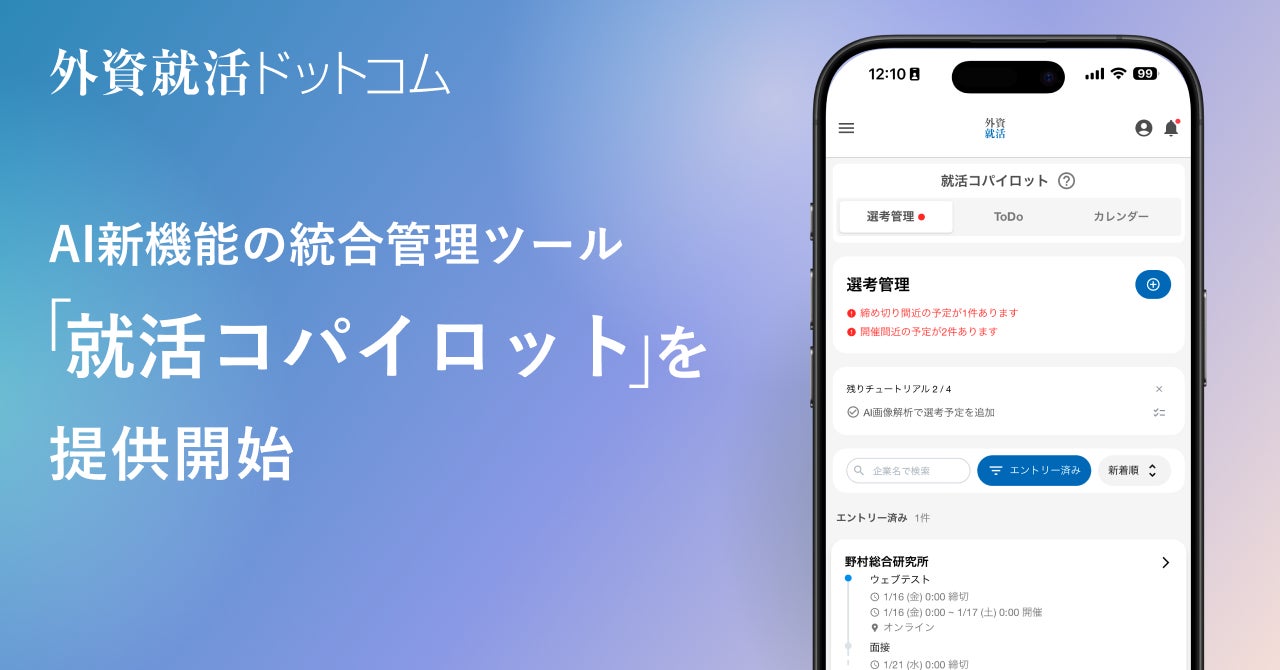 外資就活ドットコム、AI新機能の統合管理ツール「就活コパイロット」を提供開始