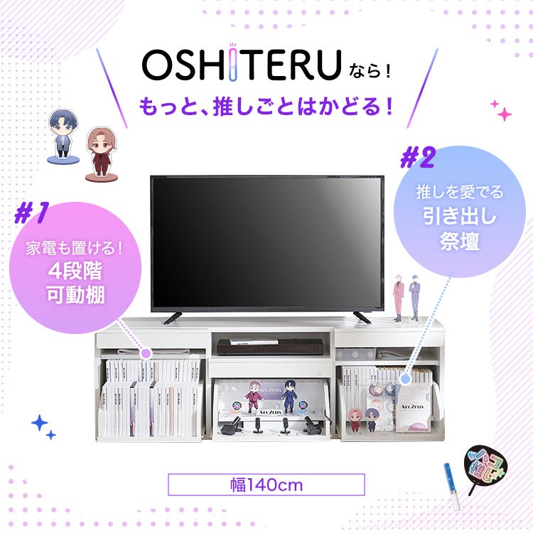 『推しが増えて、今の棚では収まりきらない……』 そんなファンの切実な声から生まれたのが「OSHITERU(オシテル)ワイドタイプ」。