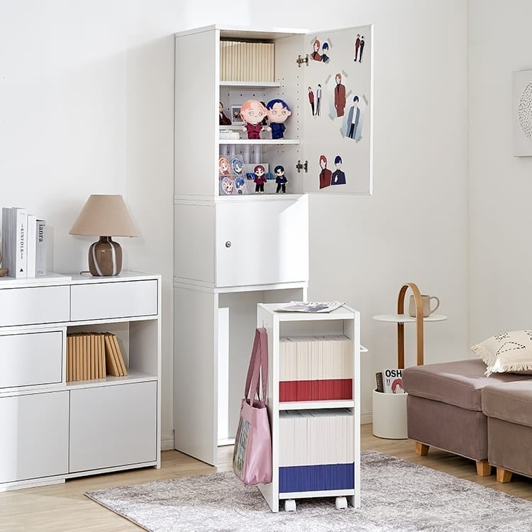 お気に入りのグッズを美しくディスプレイできる一方で、生活感の出やすいアイテムは扉内にすっきり収納可能で、限られた空間でも“推し”と心地よく暮らせる設計が特長です。