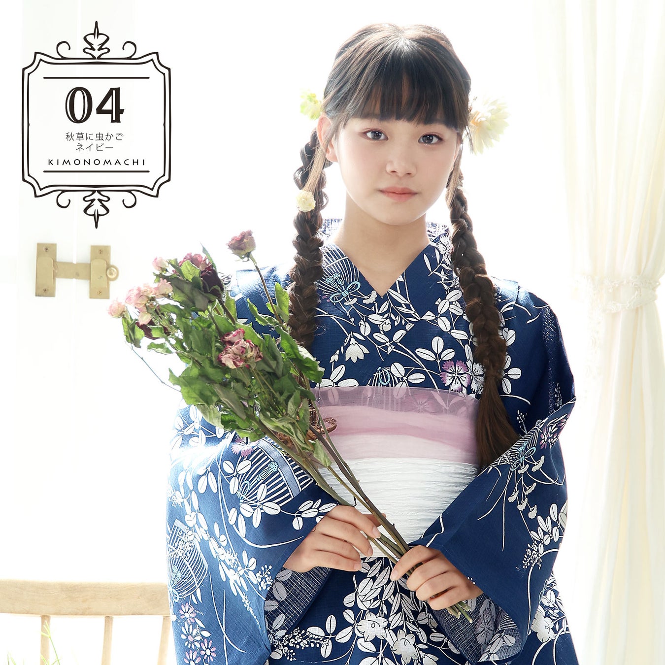 紺白の配色が昔ながらの浴衣らしく、奥ゆかしい虫かご文様が飽きの来ないデザインとなっています。