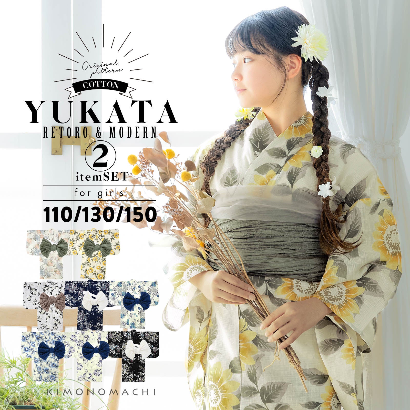 2wayタイプの浴衣は110、120,130,140、150の全5種類。まだご自分では浴衣の着付けができない女の子にも着せやすく、簡単にかわいい浴衣を楽しんでいただけます。