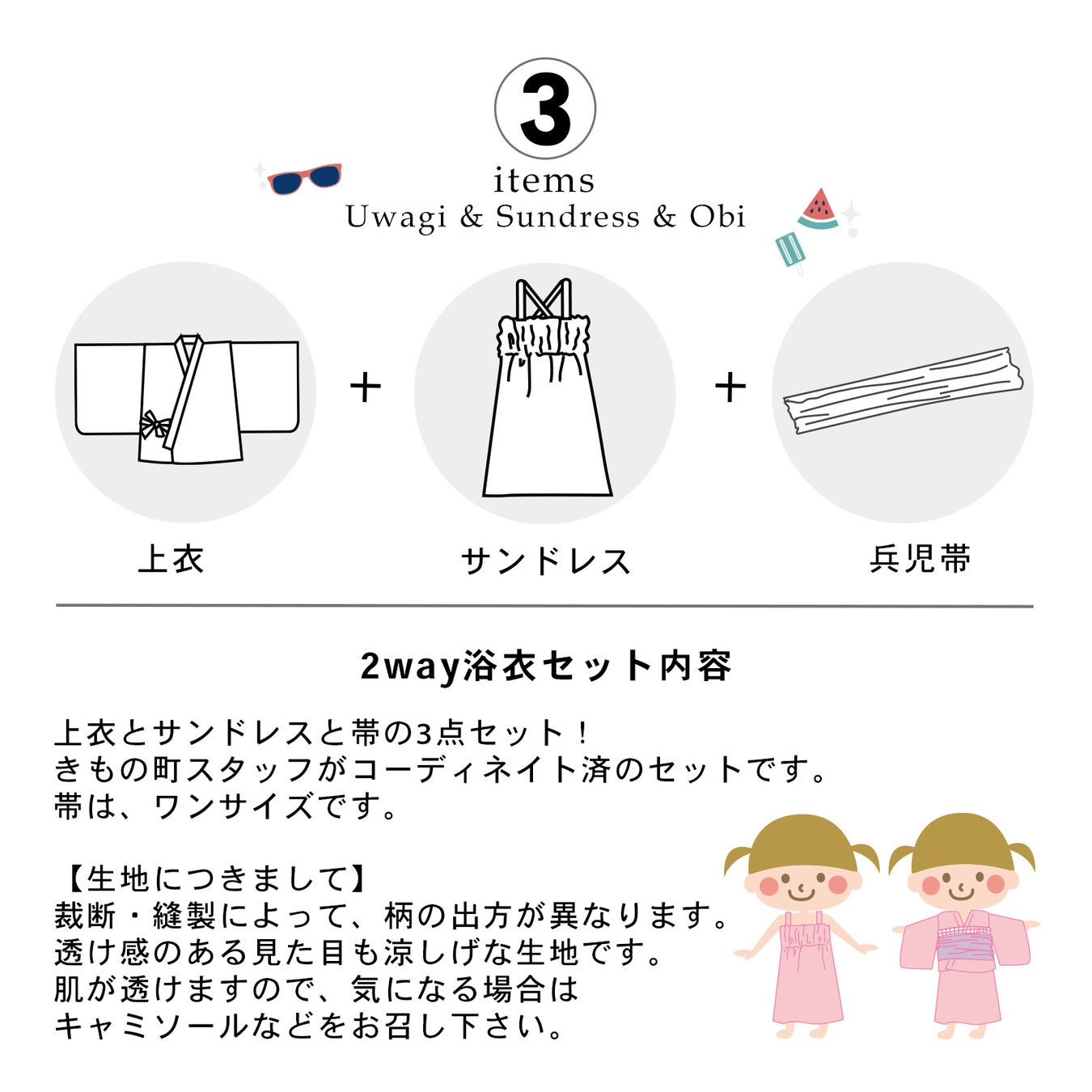 浴衣(上衣+サンドレスのワンピース)+帯の計3点セット
