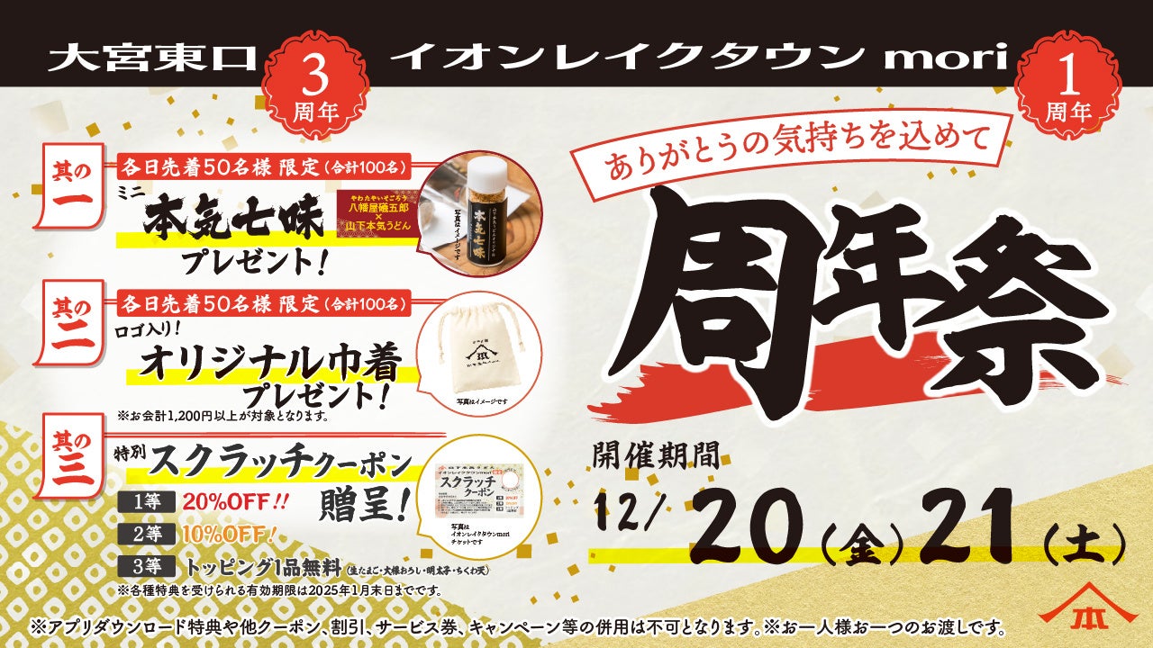 山下本気うどん大宮東口・イオンレイクタウンmori「合同周年祭」を開催!!