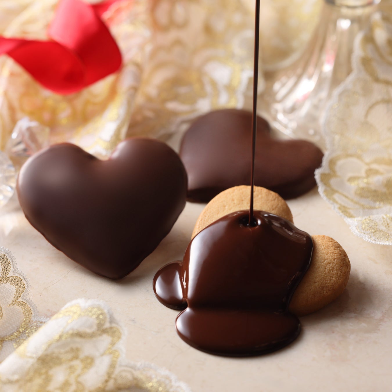 毎年好評のバレンタインラインナップ ハートのチョコ掛けサブレ