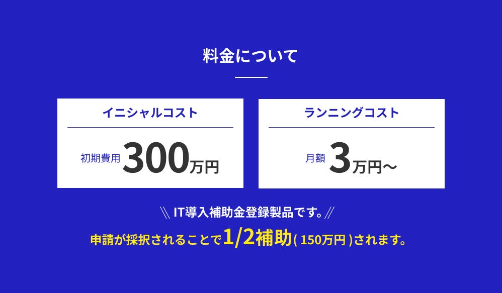 〜IT導入補助金を活用することでイニシャルコスト1/2の150万円から提供可能〜