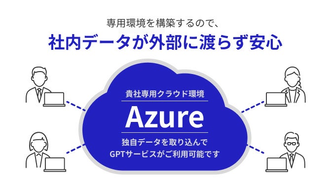導入が簡単なSaaS型のサービスでは、多くの企業が共有環境で利用するため情報漏洩のリスクが懸念されます。「Chatty」ではこの問題を解決するため、専用のAzure環境を構築しそれぞれの企業が独自にChatGPT(GPT-4)を利用する環境を提供します。そうすることで、他の企業とのデータ共有や、SaaS開発企業への情報漏洩のリスクを根本から排除します。自社のデータを完全にコントロール下に置きながら、GPT-4の高度なAI機能を安心して活用できます。セキュリティを最優先に考える企業にとって、安心して活用していただけるサービスです。
