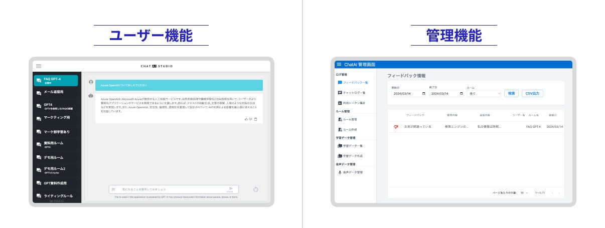 Azure OpenAIのAPIを用いてカスタマイズされた社内専用GPTを構築し、自社の独自データを用いてChatGPT(GPT-4)を活用することで、多岐にわたる業務をサポートします。