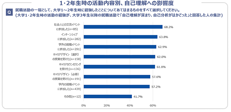 ⇒大学1・2年生時の就職活動経験は、自己理解を深めるのに有用といえる