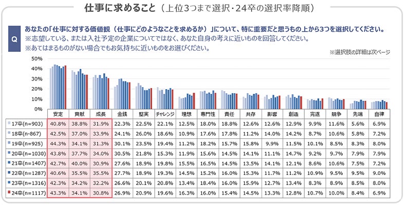 ⇒安定した環境に身を置いた上で、貢献・成長していきたいという考えが定着している。
