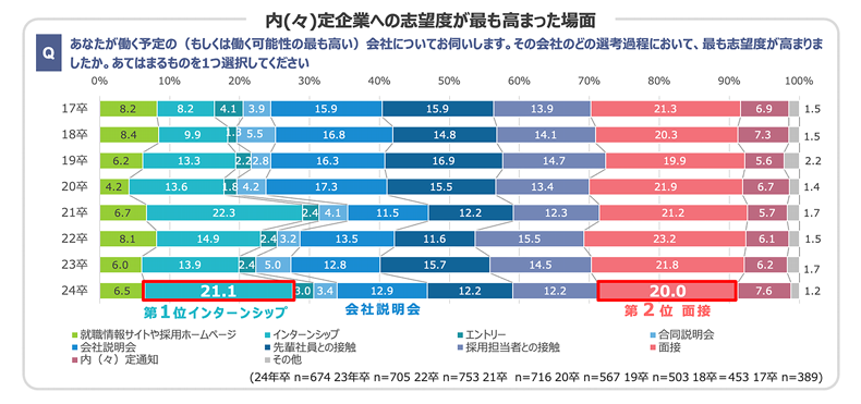 企業への志望度が高まる場面は「インターンシップ」が1位