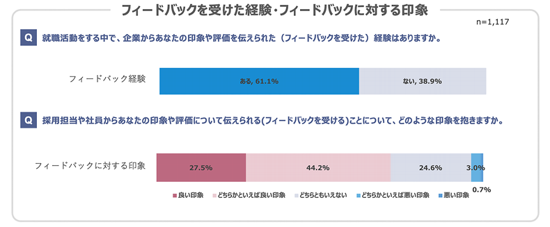 ・就職活動をする中で、企業からあなたの印象や評価を伝えられた(フィードバックを受けた)経験のある学生は61.1%。