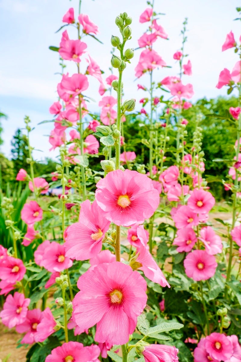 葵は様々な色や形 の花が咲くことから、「個性を大切に、美しく育ってほしい」という親御さんの願いも感じられます。(写真:立葵)