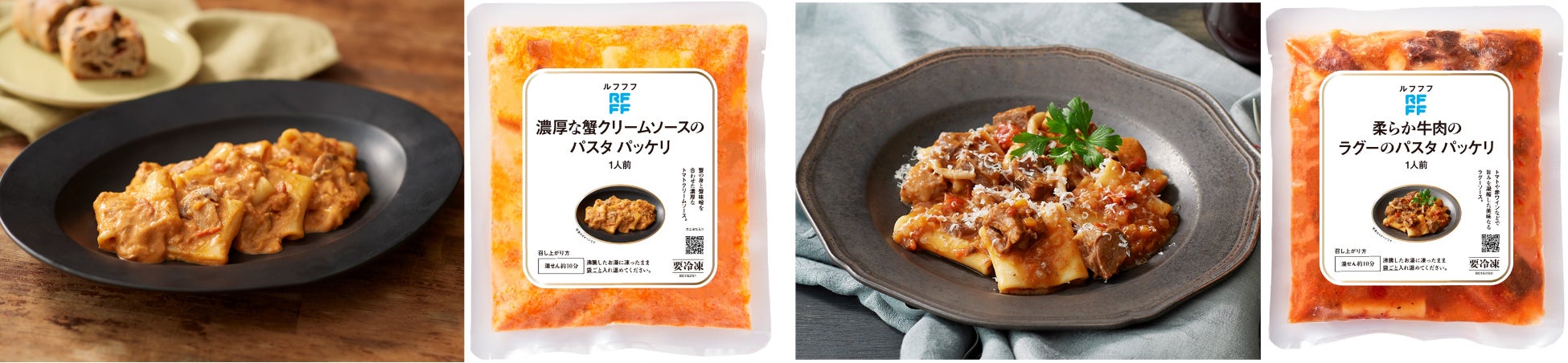 右:柔らか牛肉のラグーのパスタ パッケリ 918円(税込)