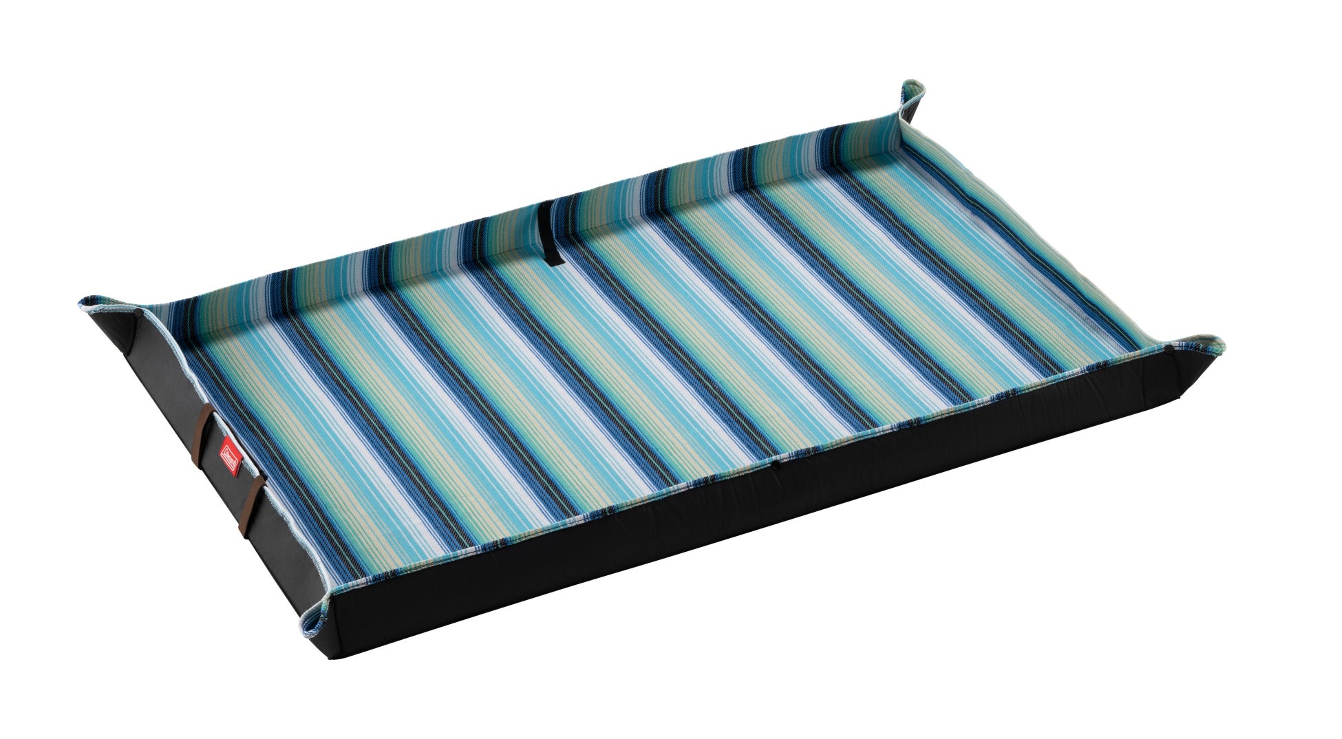 表地は手触りの良い起毛ポリエステル、裏地は水を通さないPEVA素材を採用したレジャーシート。縁を立ち上げて固定すれば砂や小石、虫などが入りにくくなります。サイズは、大人4人が座ることができインスタントアップ IGシェードにもぴったりフィットする“デラックス”(約210×170cm)と、大人2人が座れるコンパクトな“デラックスミニ”(約150×100cm)の2種類。また、カラーは落ち着いた色合いで自然に馴染む“グレージュストライプ”と、明るく楽しい気分を演出する“エメラルド”の2色展開です。