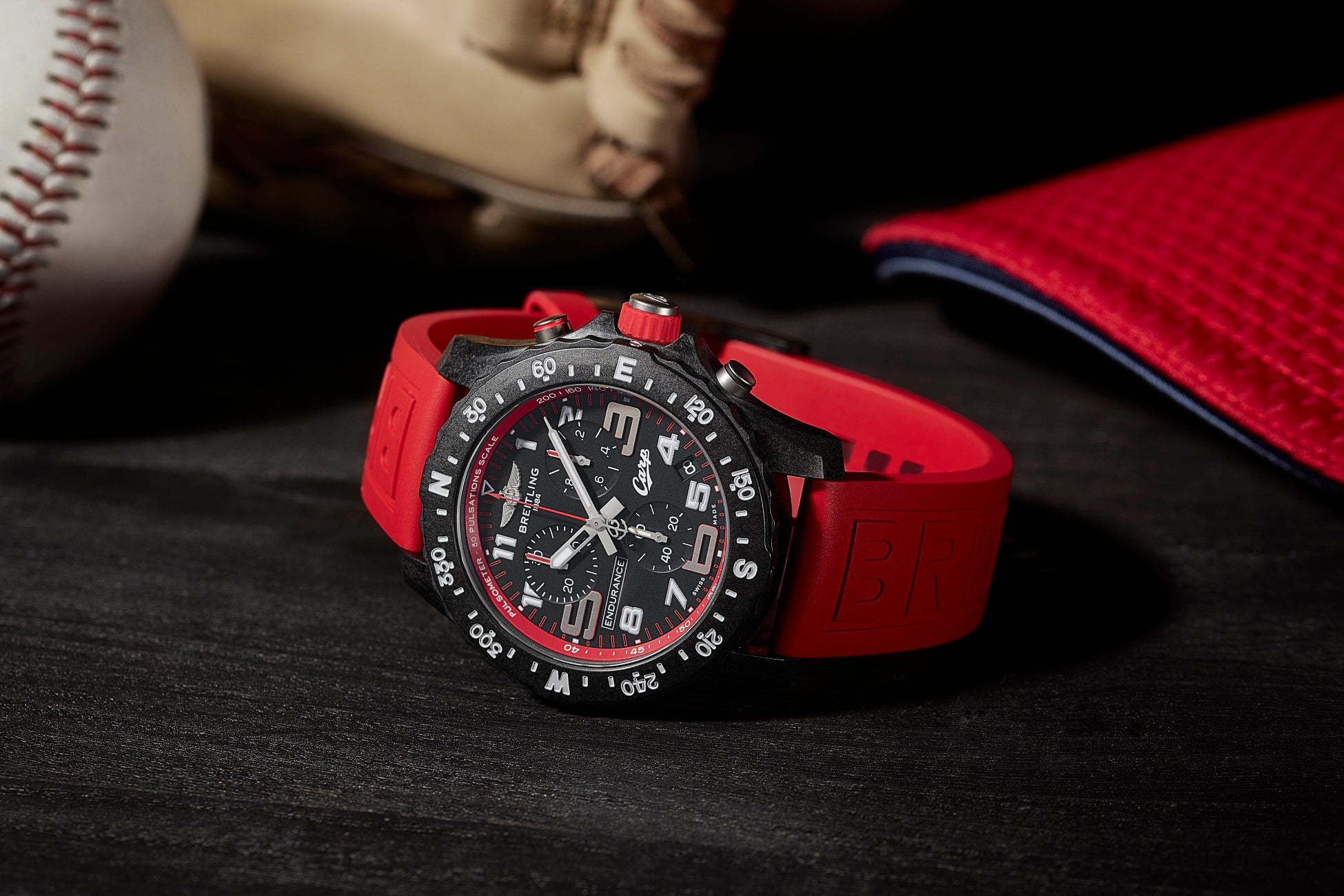 ブライトリング エンデュランス プロは、直径44ミ リのケースに超軽量素材であるブライトライト®を採用。チタンのわずか1/3という軽さを実現しています。内部には、温度補正スーパークォーツ™ムーブメントを搭載し、その精度は従来のクォーツの10倍。快適な着け心地で高精度であるうえ、ファッション性も豊か。カラフルなバリエーションを揃え、日常での着用にもセンスが光ります。