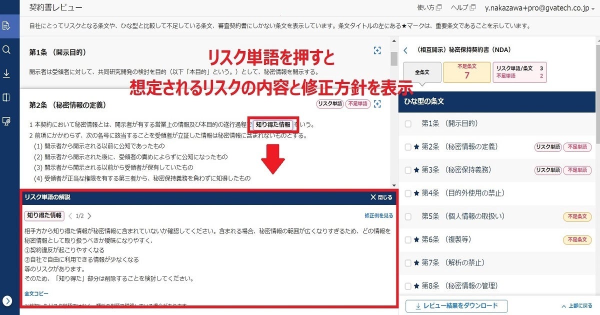 AI契約書レビュー支援クラウド「GVA assist」が「リスク単語の理由説明機能」をリリース ~修正要否の判断に伴う不安やコメント作成の負担を軽減~