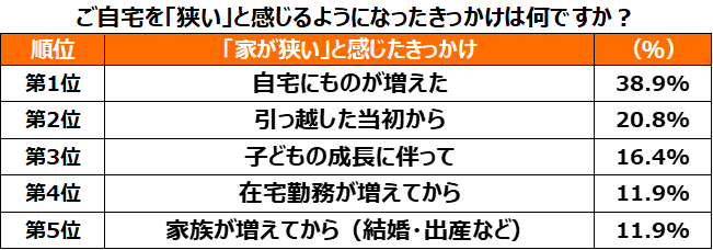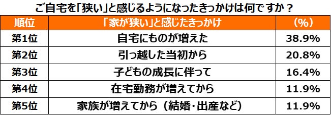 ◆「家が狭い」と感じ始めた理由は“ものの増加”が最多