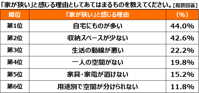 住まいの「狭さ」に関する意識調査を実施 「家が狭い」と感じる理由は「ものの増加」、増える荷物と収納不足が居住空間の課題に