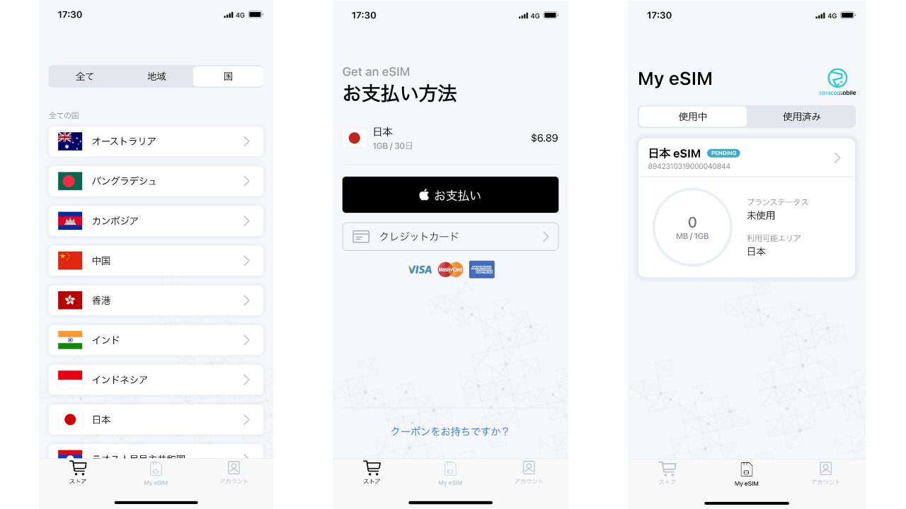 QRコードの用意やAPNやローミング設定の変更は不要、アプリの中でeSIMの購入からインストールまで完結