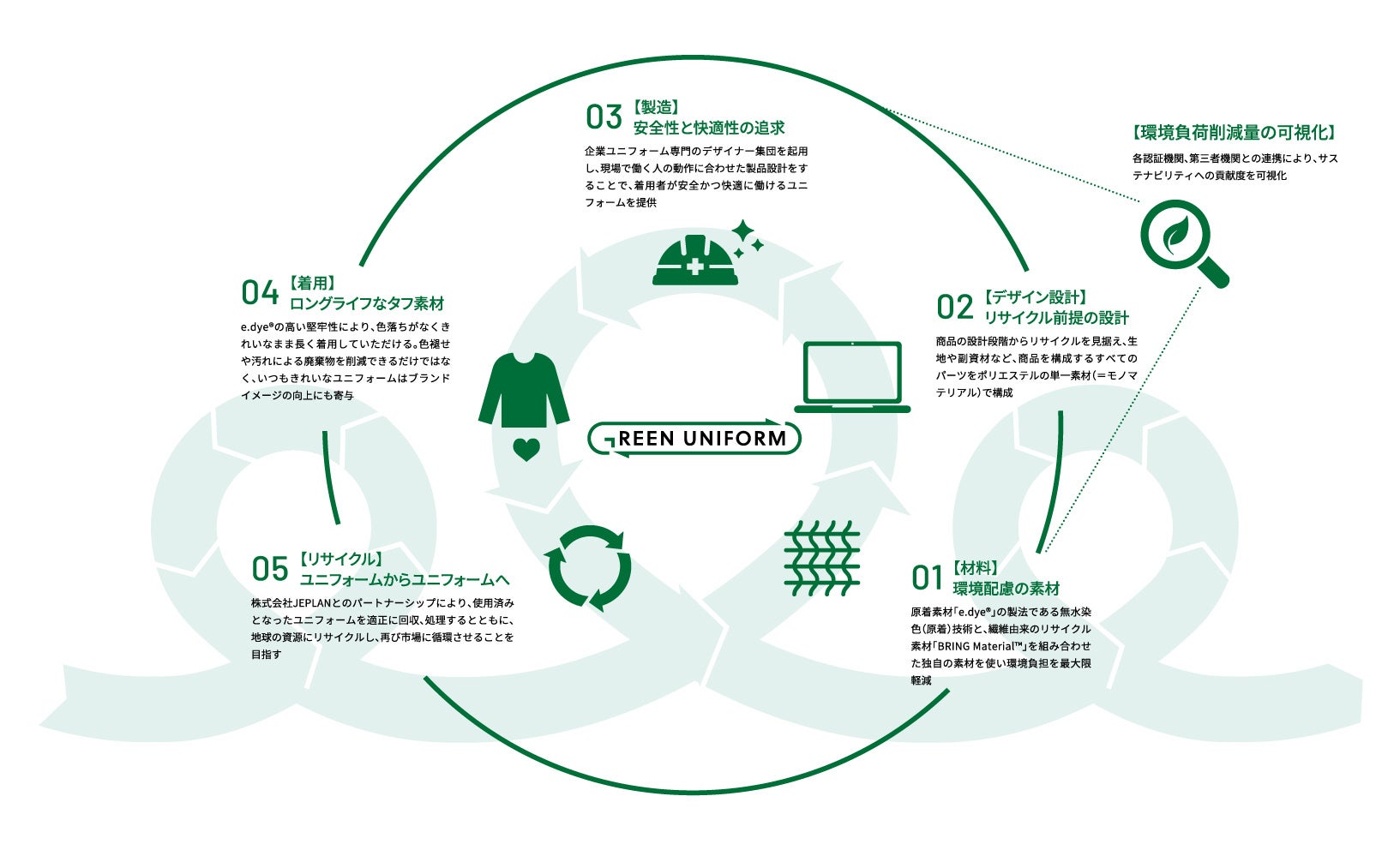 ■環境負荷削減を実現する「GREEN UNIFORM」の“完全持続型スキーム”