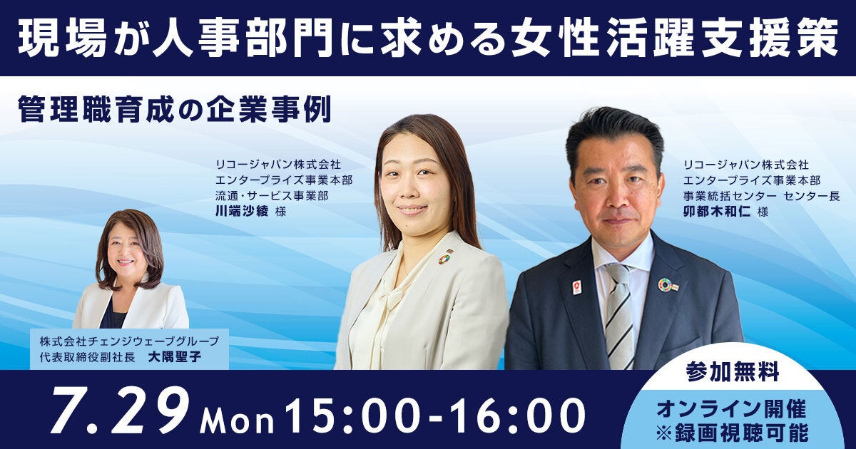 7月29日(月)開催 女性管理職育成に効果的な人事部門と現場の連携~企業事例オンラインセミナーのお知らせ~
