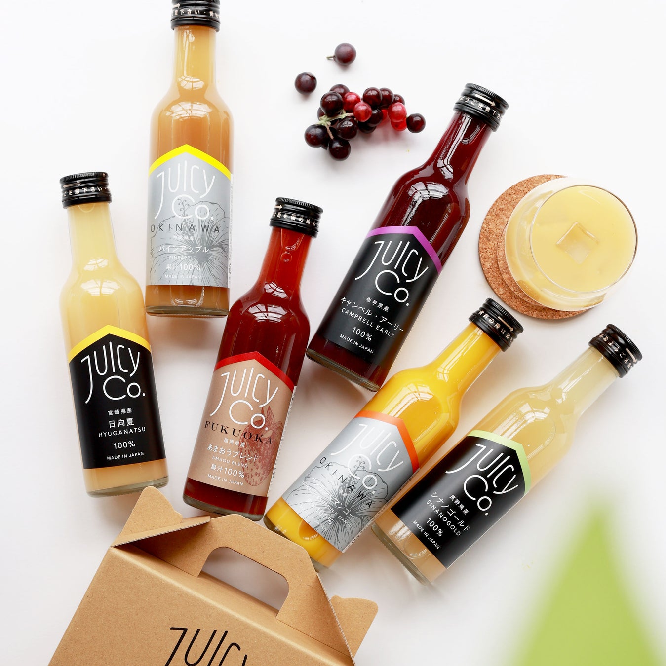 また、生産者の想いをのせた、産地でしか出会えない驚きの味わいが楽しめる「ジューシー コー」の「国産・無添加・ストレート果汁100%」のジュースセットもご用意いたしました。