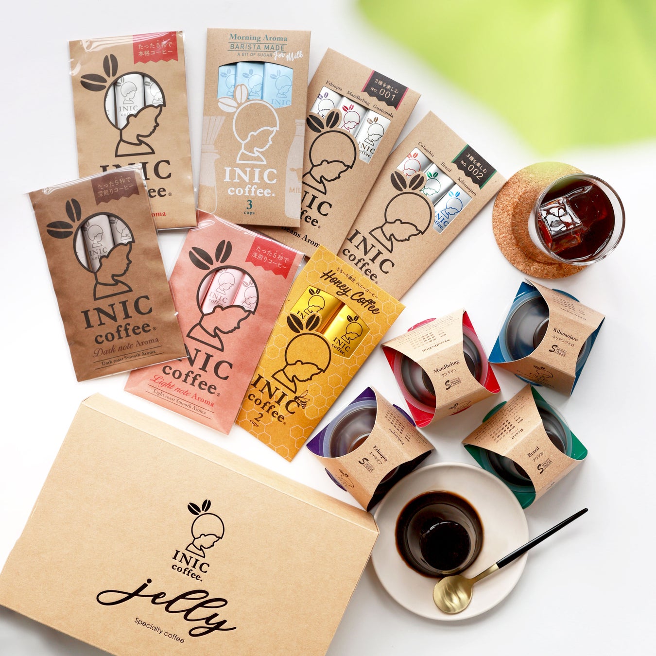毎日放送『サタデープラス』<ひたすら試してランキング>コーヒーゼリー編※1で15品中1位に輝いた『コーヒーゼリー』とイニックコーヒーの人気フレーバー『スムースアロマ』や『ハニーコーヒー』などをセットにしたギフトもご用意しています。