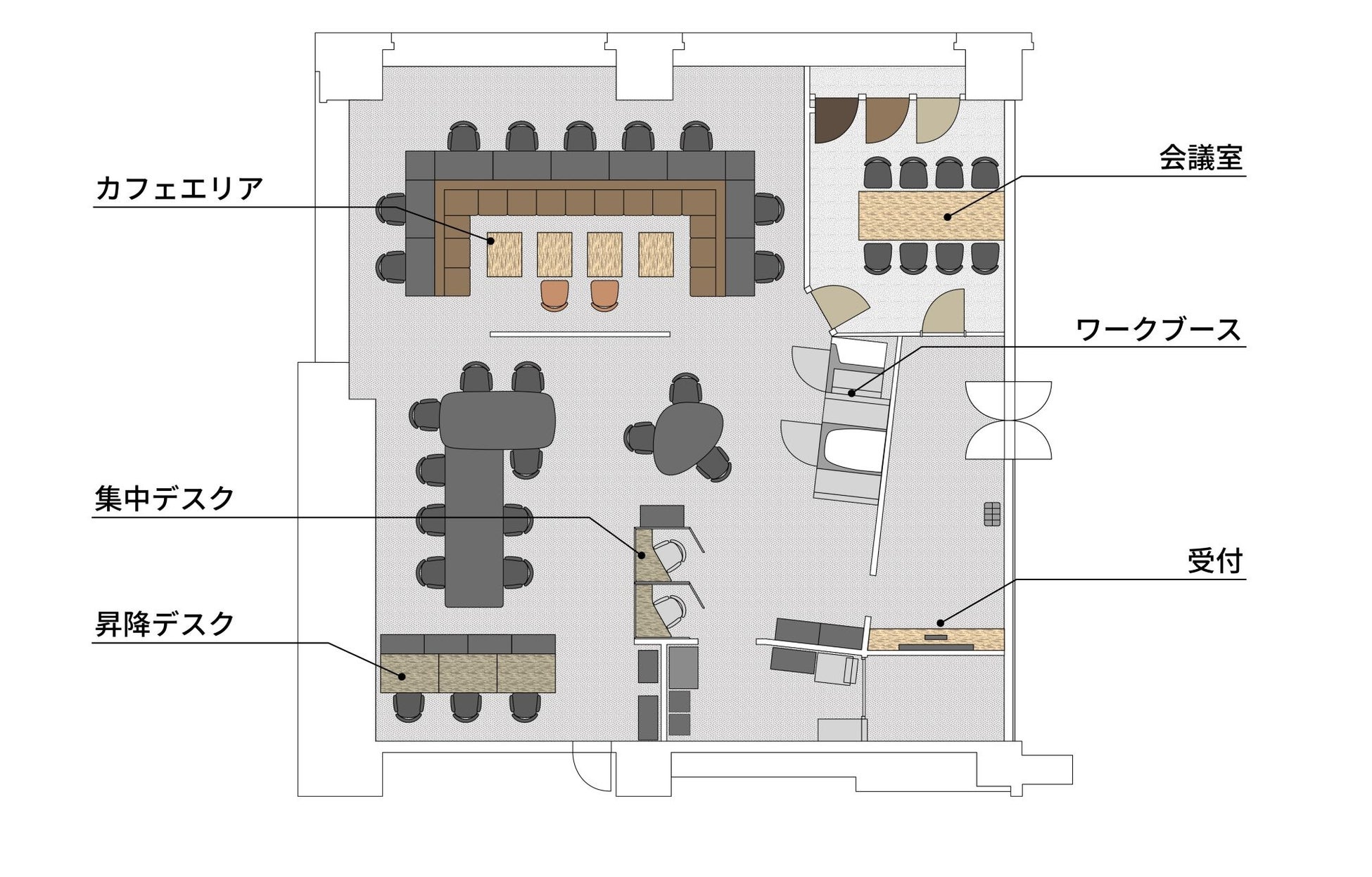1,コンパクトながら、多様なワークスペースを用意