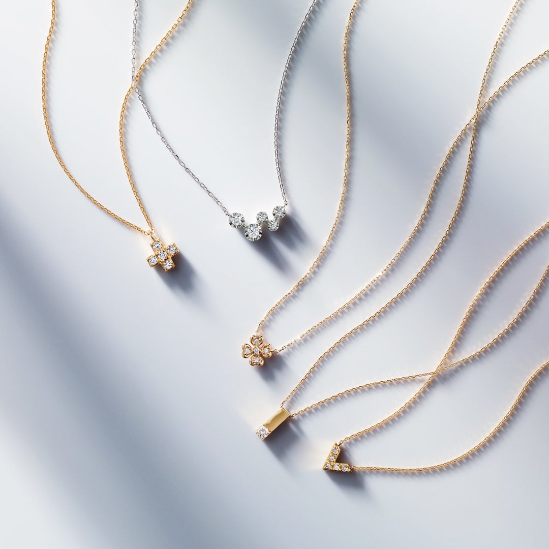 (下写真)ネックレス左から¥110,000◇(K18YG/ダイヤモンド) ¥110,000◆(PT/ダイヤモンド)