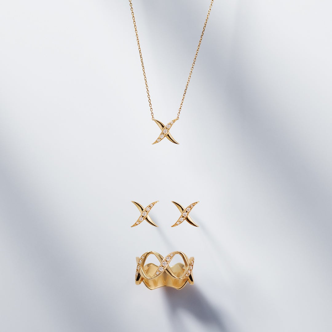 ・ブランドの頭文字「V」と代表作「X」。その2つがぴったりと重なる50周年記念モデル。¥198,000~(K18YG) ¥297,000~(K18PG/K18YG/PT)