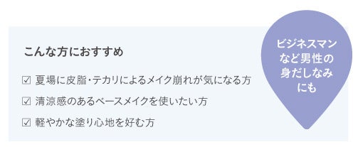 夏の不快なベタつきを抑えながら、皮脂によるメイク崩れも気になりにくいさらさら肌へ。