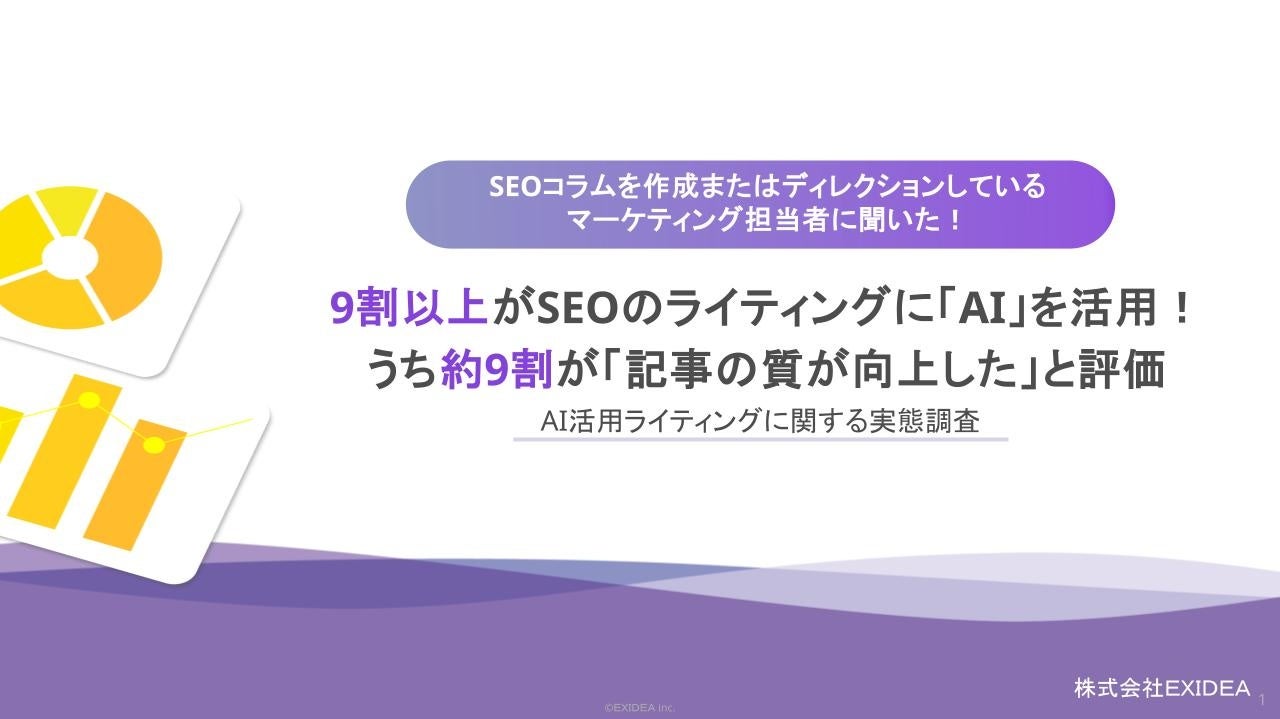 最先端のデジタルマーケティングとテクノロジーを追求するスタートアップである株式会社EXIDEA(本社:東京都中央区、代表取締役社長 小川 卓真、以下当社、URL:https://exidea.co.jp/)は、「SEOライティングに関するAIの活用に関する実態調査」を実施しました。