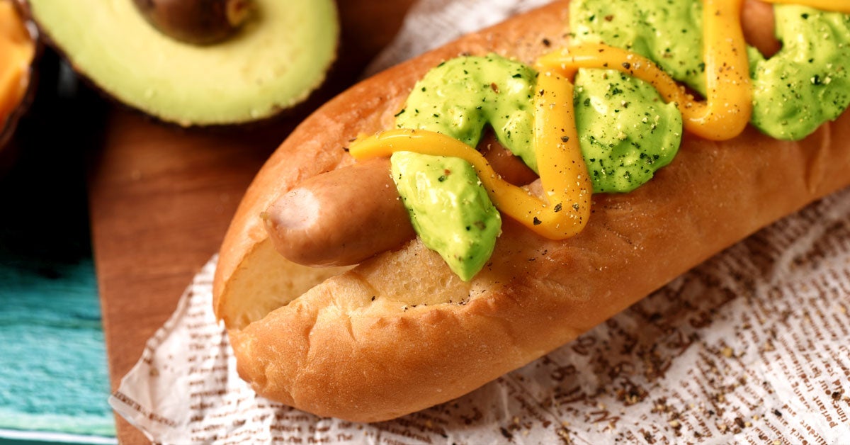 パリッとジューシーなソーセージにワカモレ風のアボカドソースとチェダーチーズソースをトッピングし、濃厚な味わいのホットドッグに仕上げました。粗挽きのブラックペッパーがピリッと味を引き締め、旨味を引き立てます。