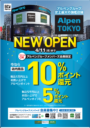 ■「Alpen TOKYO」オープニングセール なんと!奉仕品合計7万点以上!!
