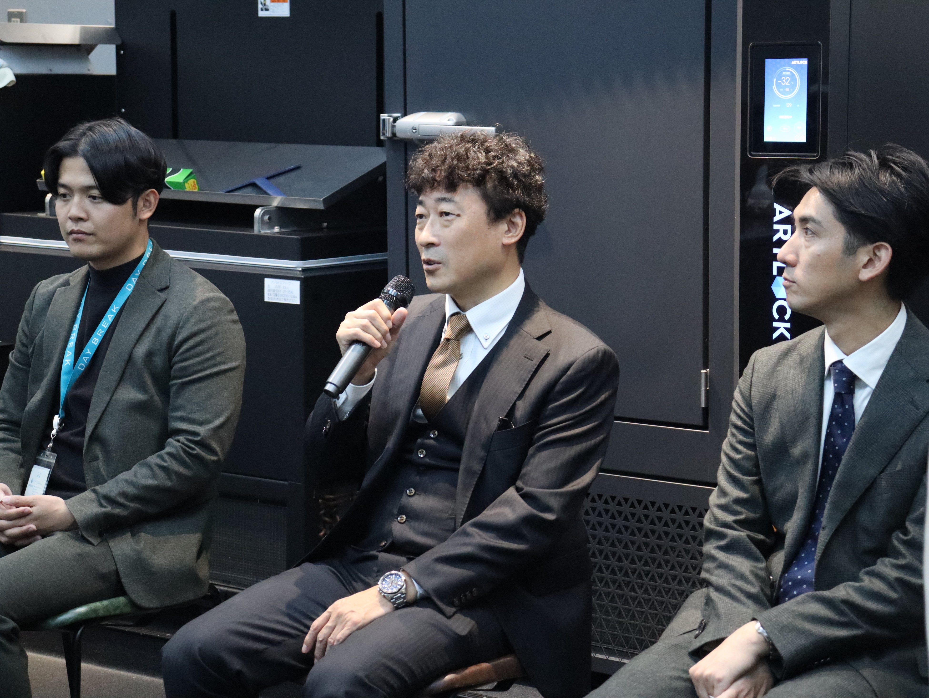 宮寺は、この技術を活用して、デリカセンターで刺身を高品質に冷凍し、各店舗へ配送しているスーパーの事例を紹介。加工スペースのない小規模店舗や魚を捌ける人材がいない現場でも高品質な鮮魚販売が可能になり、顧客満足度が向上したと解説しました。説明後には、実際にアートロックフリーザーを使った刺身の凍結デモを実施。美しく盛り付けた状態でそのまま凍結できることを実演し、会場の関心を集めました。