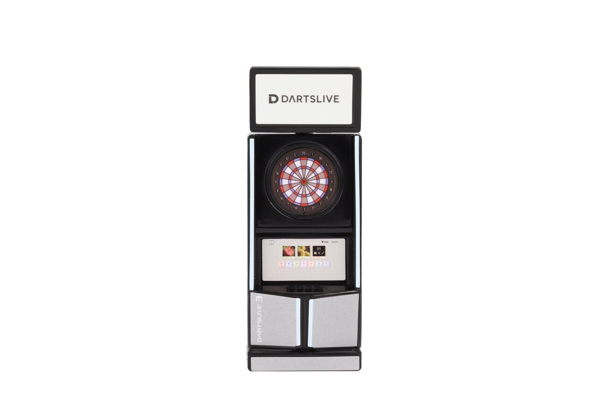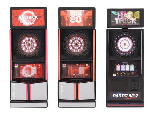 2003年、株式会社ダーツライブがアメリカから上陸していたソフトダーツマシンにネットワークシステムを搭載し、ICカードによりプレイデータを記録する「ダーツライブ」サービスを提供開始しました。2008年にはLEDの光る盤面や通信対戦、オリジナルのパーティーゲームなどを搭載した「ダーツライブ2」を、2018年にはタッチパネルでの直感的な操作やダーツの矢が盤面のどこに刺さったのかを検知するフルビットセンサー、矢の速度を測定する機能など最新技術を盛り込んだ「ダーツライブ3」を稼働開始。国内のオンラインダーツマシン設置台数第一位のダーツマシンシリーズです。