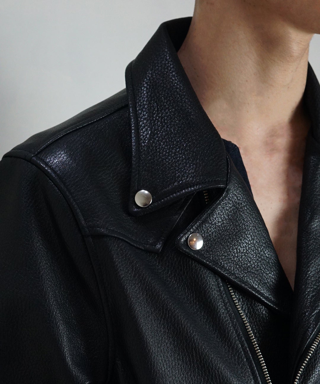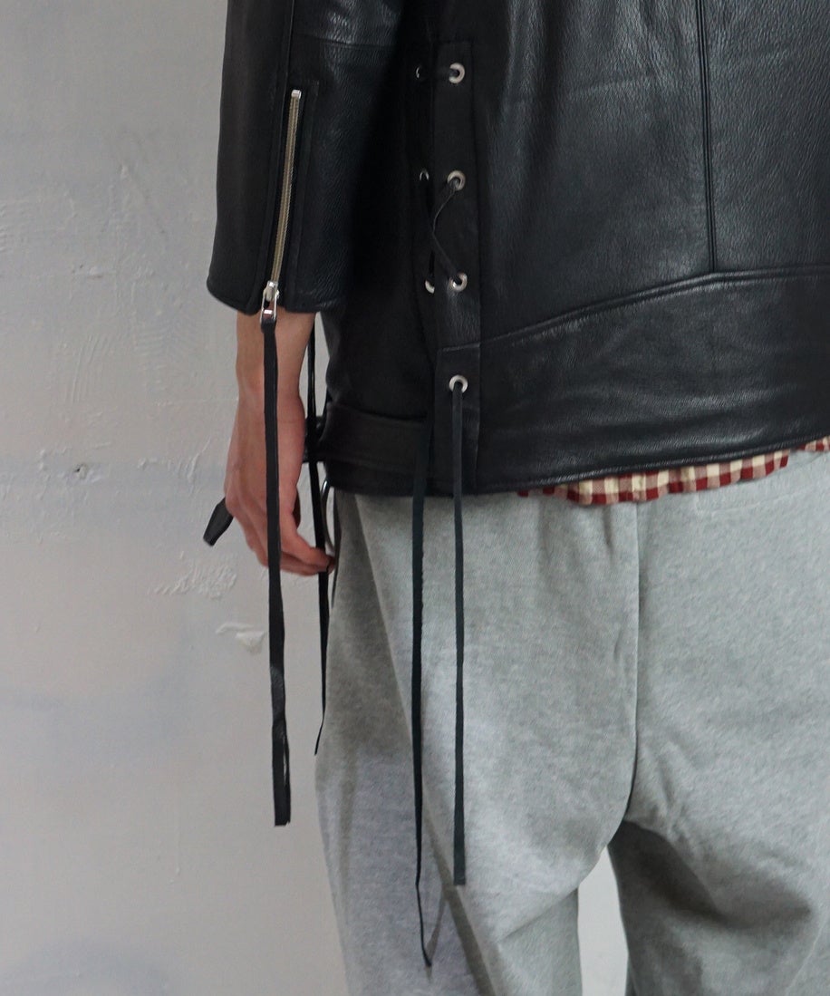 「three-quarter sleeve lamb leather oversize riders」¥209,000 税込