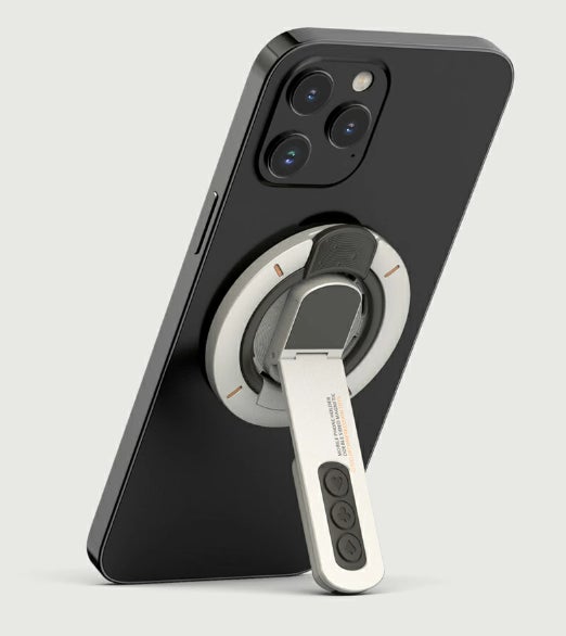 回すとゼンマイ風のカチカチ音が鳴るMagsafe対応のスマホスタンドです。シリコンリングで片手持ちにも便利です。スタンド部分には3つのプチプチボタンで暇つぶし!