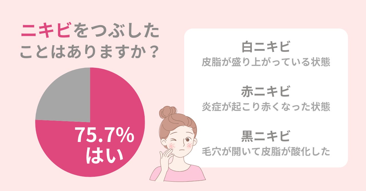ニキビをつぶしたことがある女性がとても多いことがわかりました。