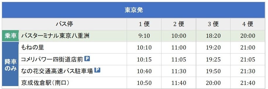 なの花交通バス株式会社(代表取締役:富田篤史、本社:千葉県佐倉市、以下「なの花交通」)は、高速バス 佐倉・四街道-東京八重洲線(以下、本路線)の経路に新たに京成佐倉駅南口での発着を追加し、他の交通機関との乗継などの利便性向上を図ります。